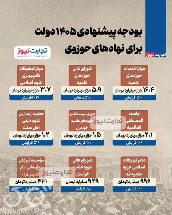 مرکز خدمات حوزههای علمیه بیشترین بودجه در میان نهادهای حوزوی را میگیرد. ۹ نهاد حوزوی اصلی، حدود ۳۱ هزار میلیارد تومان در سال ۱۴۰۵ بودجه خواهند گرفت که معادل حدود ۰.۵ درصد از کل بودجه است.