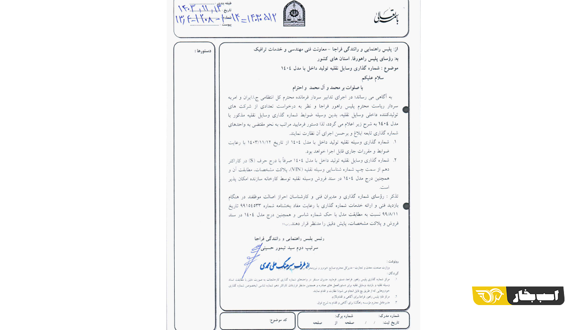 طبق این دستور، مراکز شمارهگذاری مجازند از تاریخ ۱۲ بهمنماه ۱۴۰۳، خودروهایی که آماده پلاکشدن میشوند را با مدل ۱۴۰۴ به مشتریان تحویل دهند.